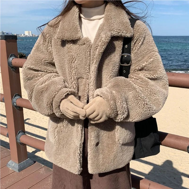 EP | Manteau en peau d'agneau à un bouton avec col polo ample
