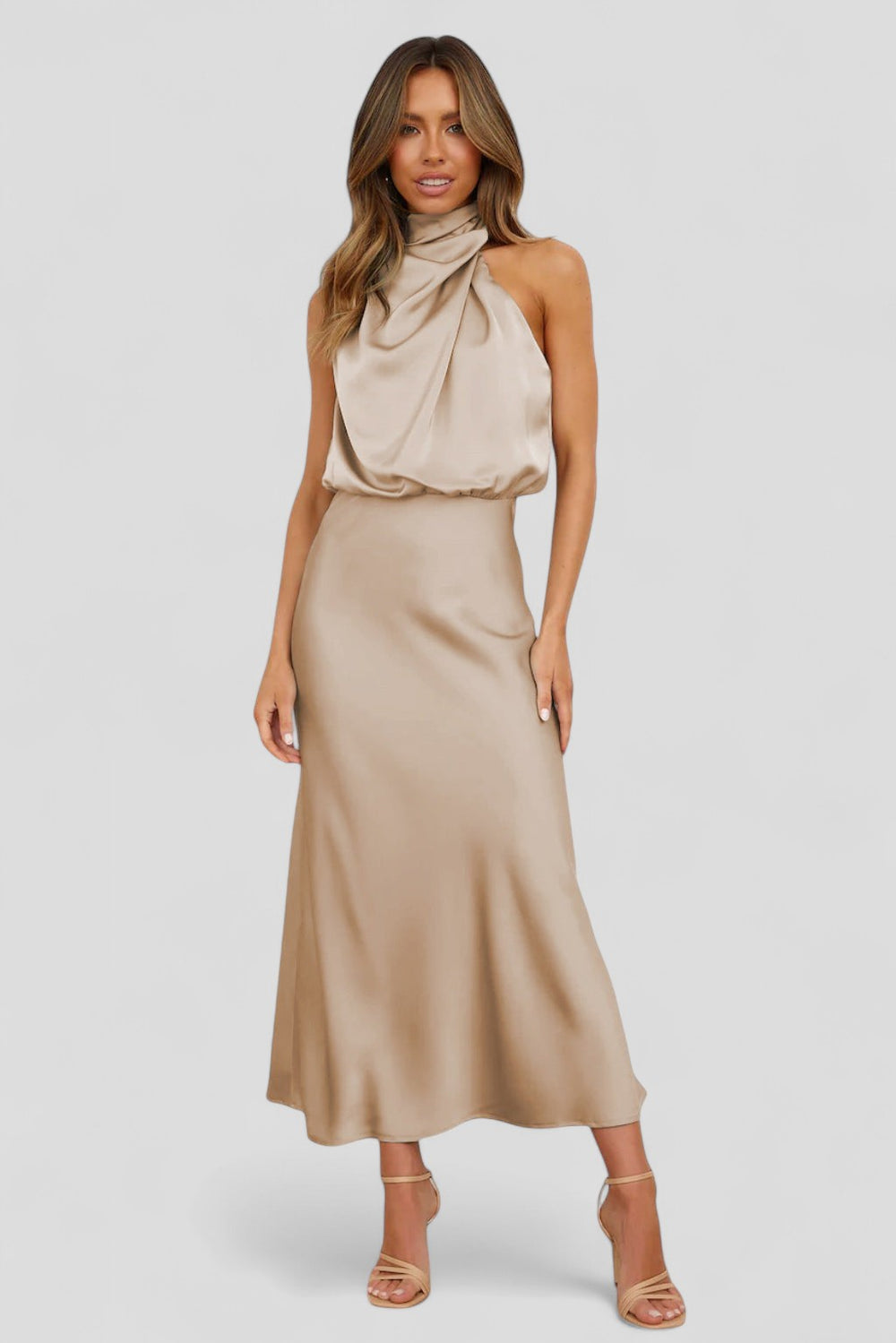 EP | Elégante robe longue avec encolure ras du cou croisée
