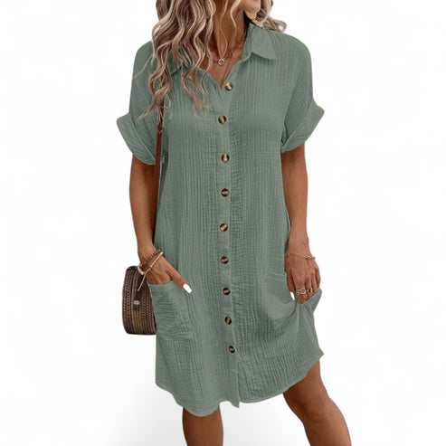 EP | Mini-robe décontractée à manches courtes avec une élégante patte de boutonnage